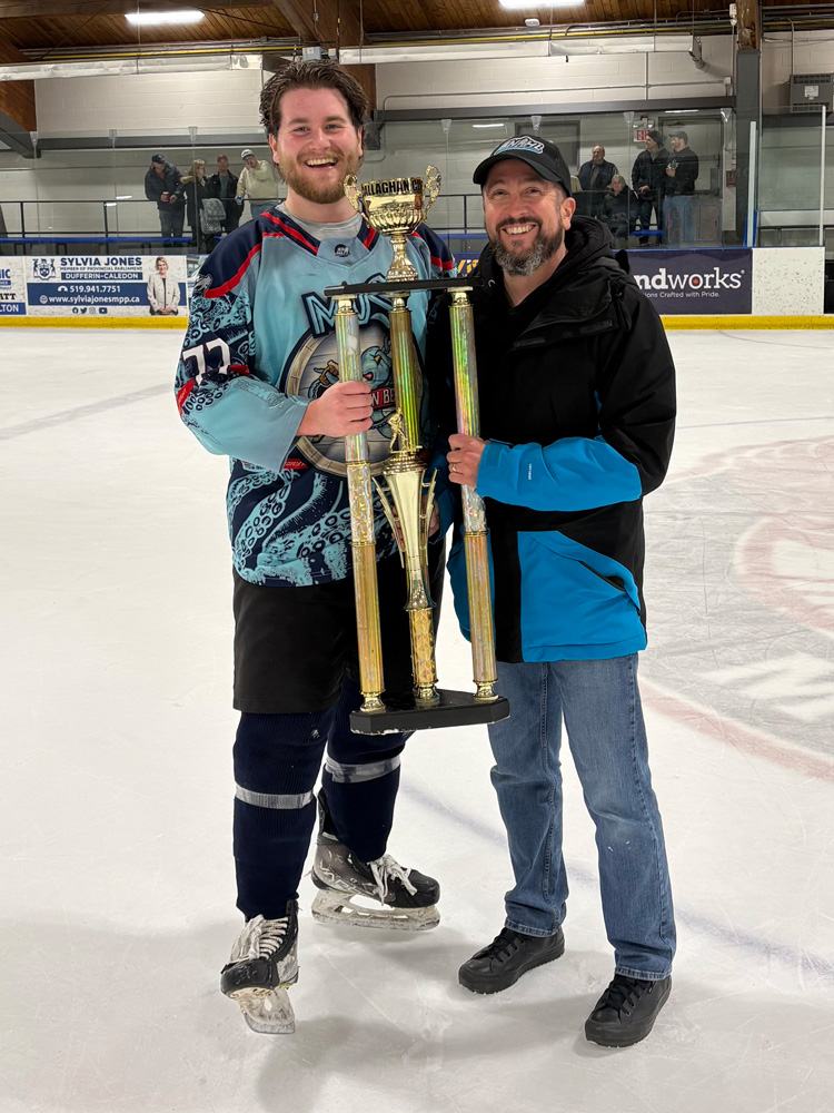 We also presented our most prestigious award of the year – the Matt Dowdle Memorial Award. This award was introduced to honour Matt’s legacy and acknowledge a league member who is a leader on and off the ice and who makes coming to the rink each week fun. As per our tradition, last season’s award winner – Jody Spagnol – had the honour of helping select the 2025-26 recipient.